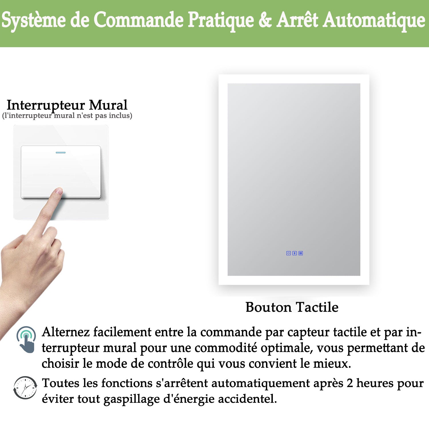 - MIROIR LED POUR SALLE DE BAIN LUMIÈRE RÉGLABLE - POSE VERTICALE OU HORIZONTALE