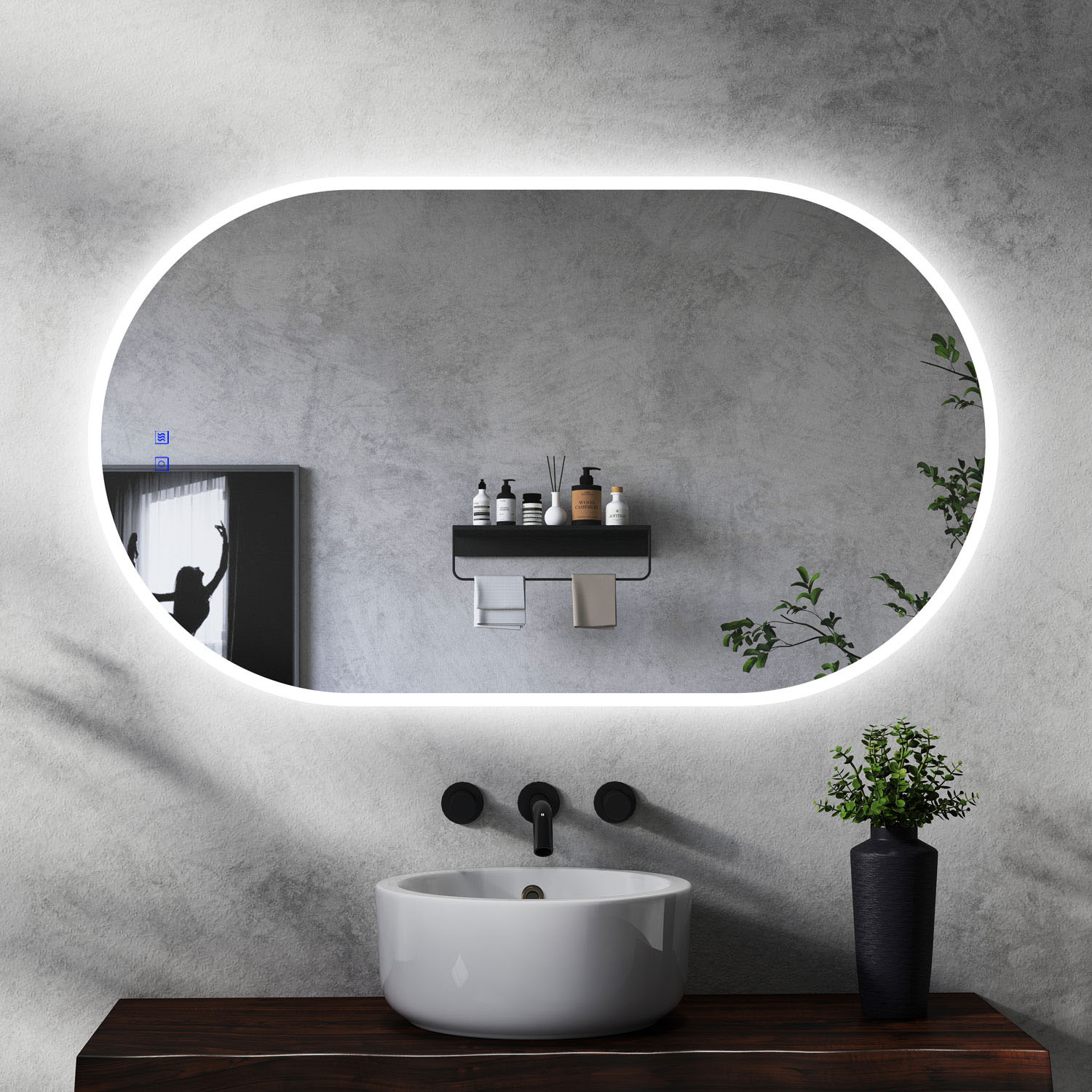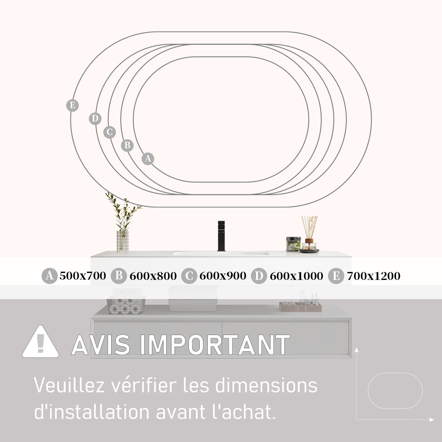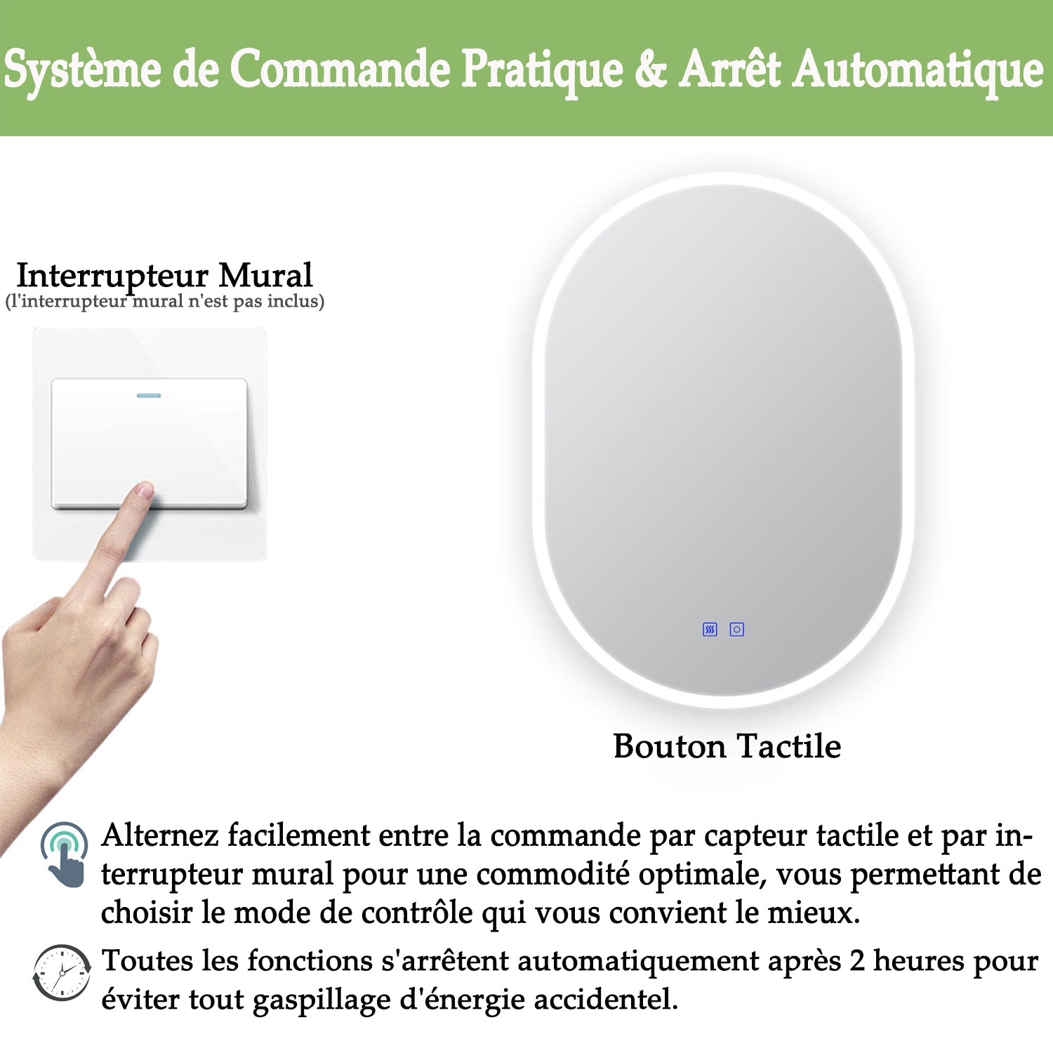 Miroir de salle de bain ovale avec bouton tactile et fonction antibuée