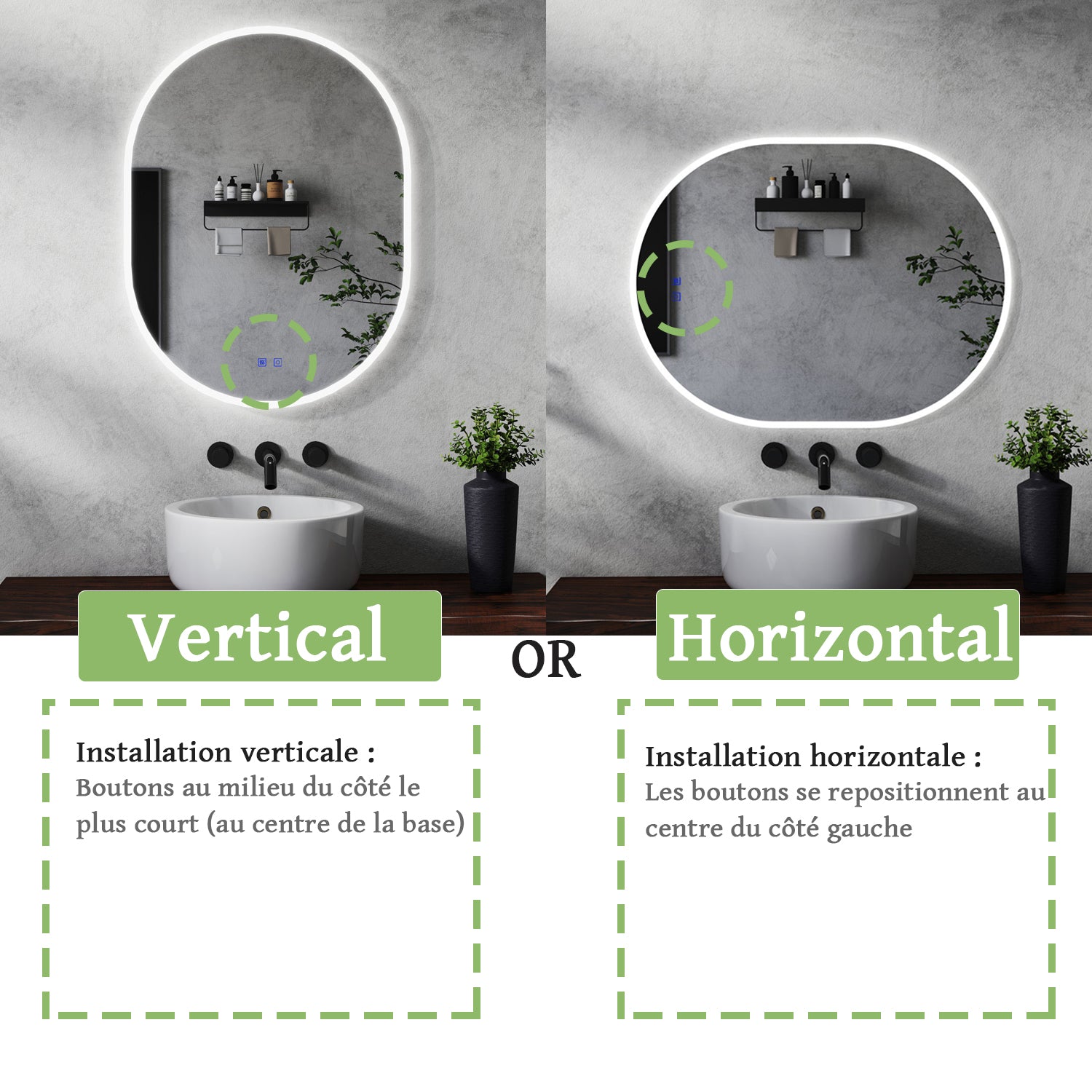 - MIROIR OVALE RÉVERSIBLE AVEC ÉCLAIRAGE LED À LUMINOSITÉ DIMMABLE LUMIÈRE 2800K-6000K