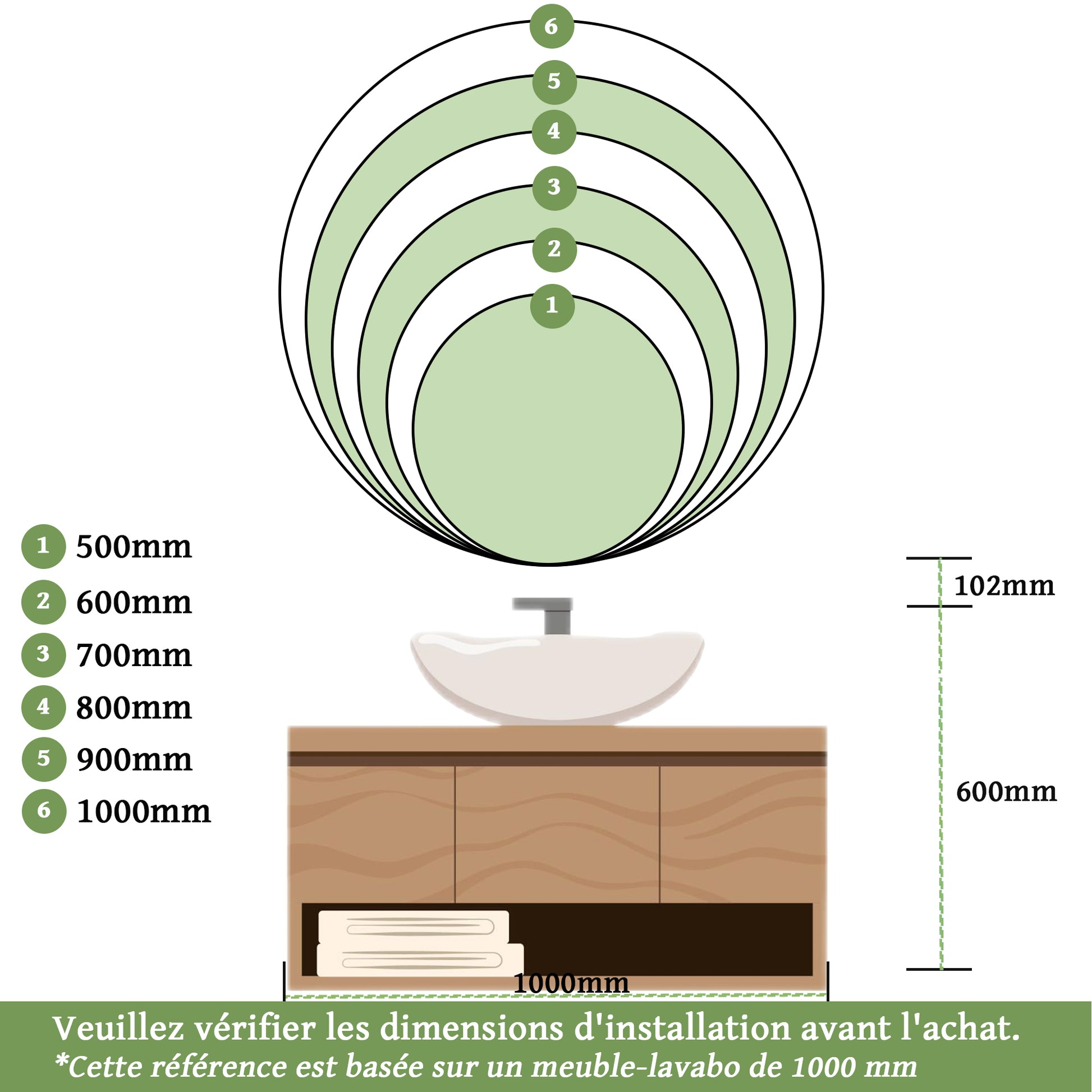 Miroir rond antibuée avec lumière LED à Luminosité réglable - 2 boutons tactiles