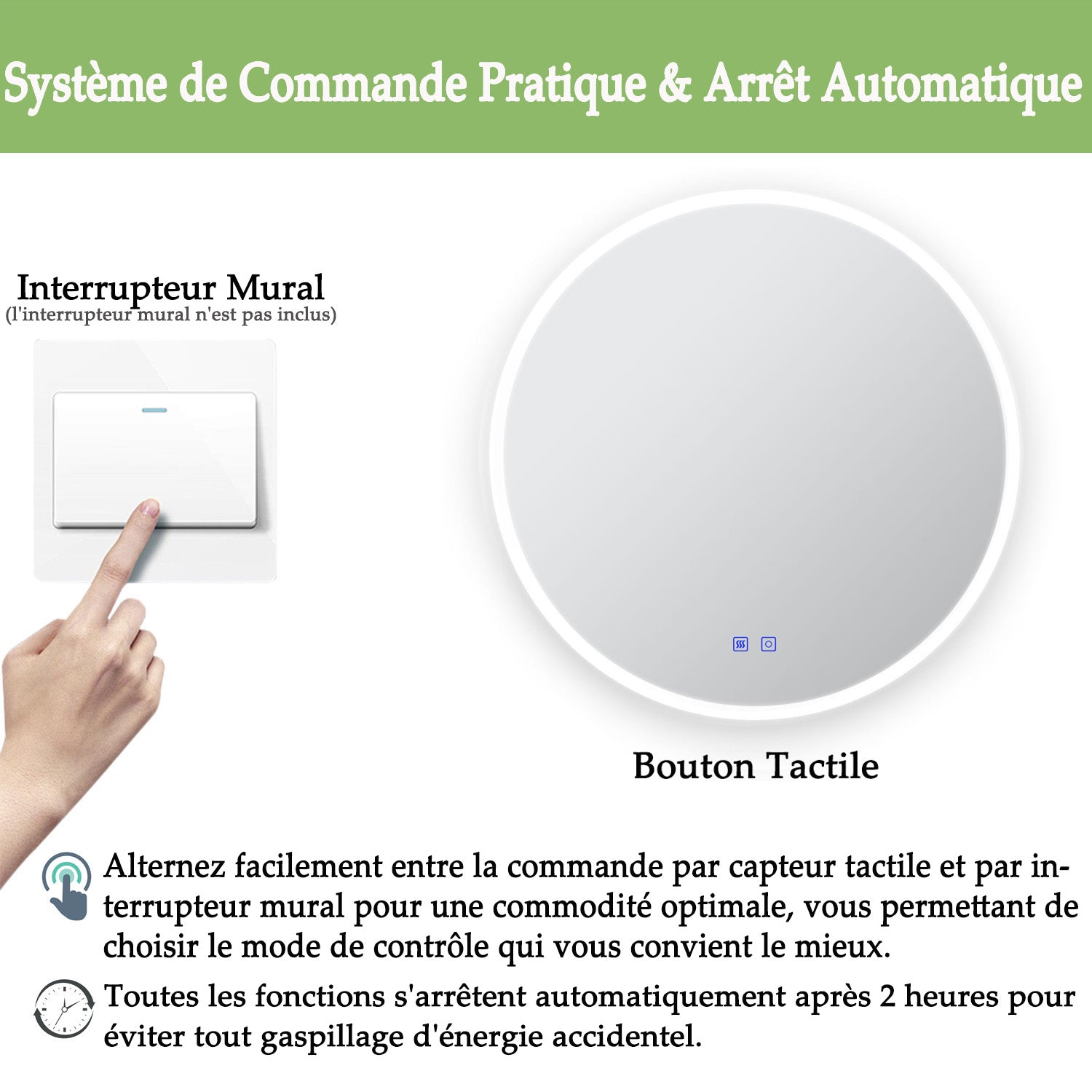 Miroir avec éclairage LED pour salle de bain anti-buée interrupteur tactile